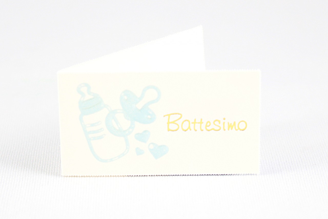 Formato aperto: cm 9 x 2,5. Formato chiuso: cm 4,5x 2,5. Stampa tipografica e lamina a caldo. Prezzo indicato per 100 pezzi.