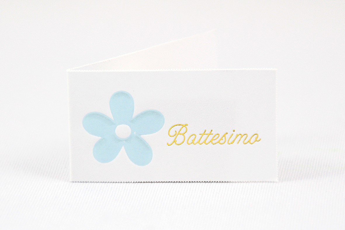Formato aperto: cm 9 x 2,5. Formato chiuso: cm 4,5x 2,5. Stampa tipografica e lamina a caldo. Prezzo indicato per 100 pezzi.
