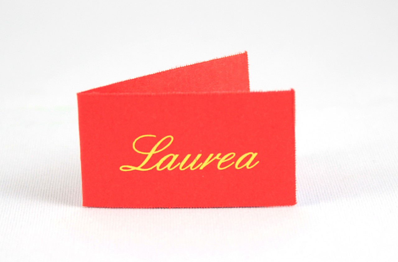 Formato aperto: cm 9 x 2,5. Formato chiuso: cm 4,5x 2,5. Stampa tipografica e lamina a caldo. Prezzo indicato per 100 pezzi.