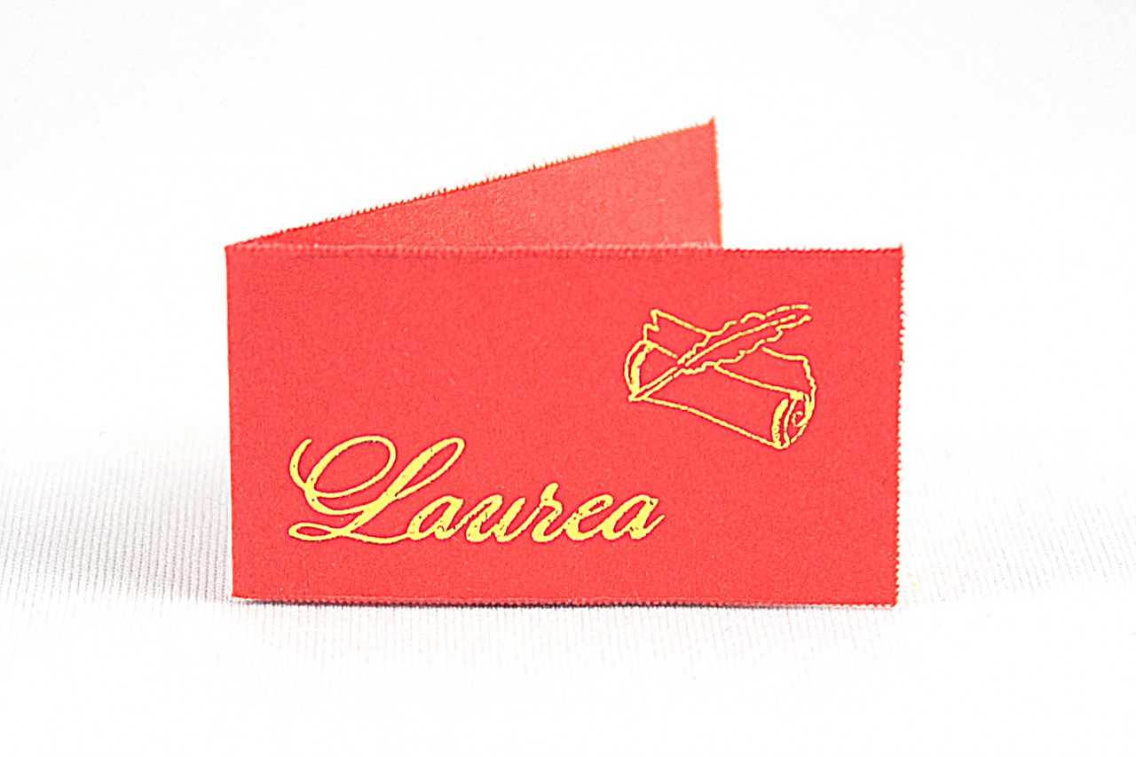 Formato aperto: cm 9 x 2,5. Formato chiuso: cm 4,5x 2,5. Stampa tipografica e lamina a caldo. Prezzo indicato per 100 pezzi.