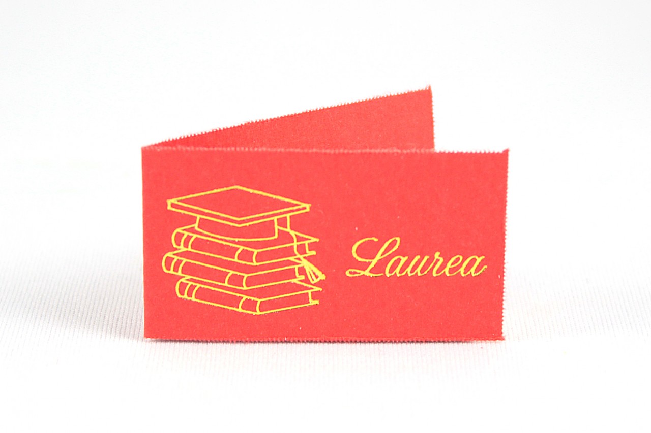 Formato aperto: cm 9 x 2,5. Formato chiuso: cm 4,5x 2,5. Stampa tipografica e lamina a caldo. Prezzo indicato per 100 pezzi.