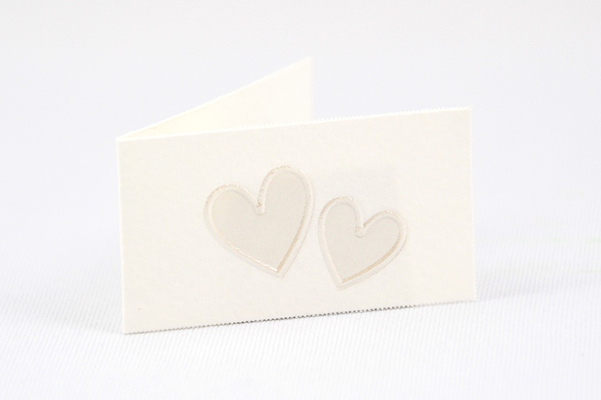 Formato aperto: cm 9 x 2,5. Formato chiuso: cm 4,5x 2,5. Stampa tipografica e lamina a caldo. Prezzo indicato per 100 pezzi.