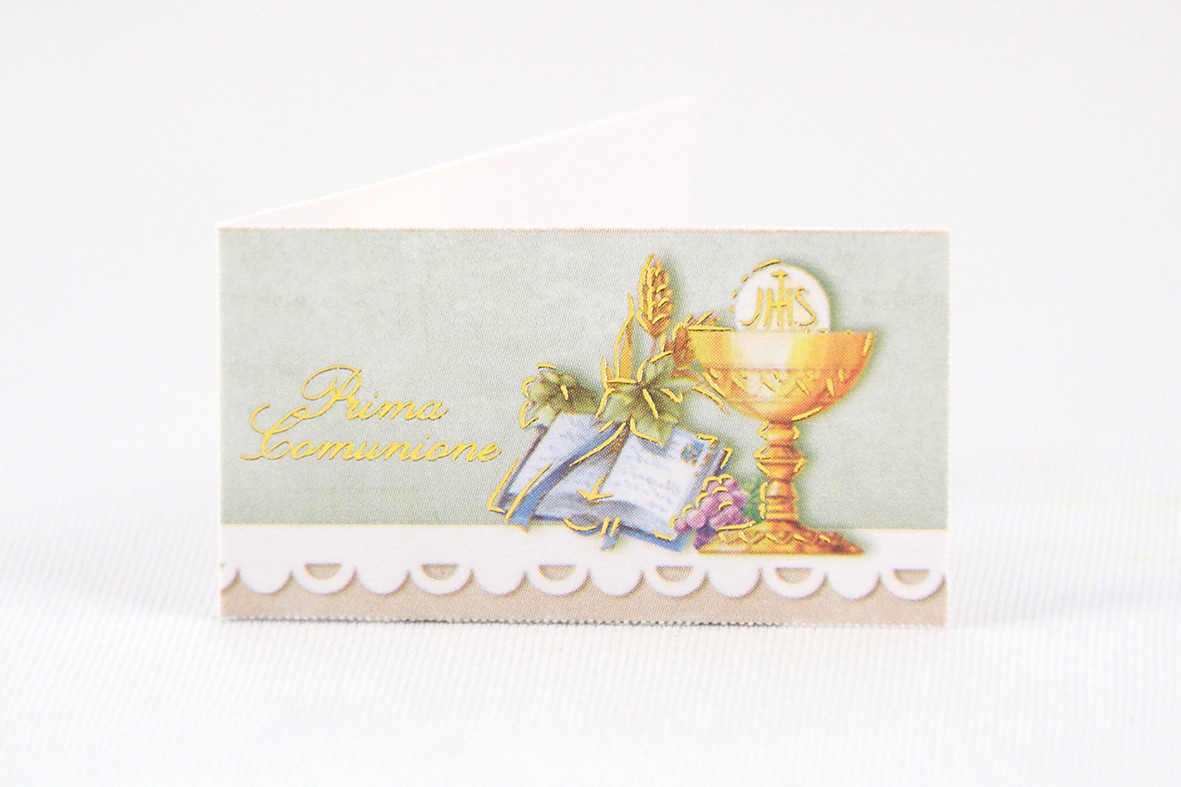 Formato aperto: cm 9 x 2,5. Formato chiuso: cm 4,5x 2,5. Stampa tipografica e lamina a caldo. Prezzo indicato per 100 pezzi.