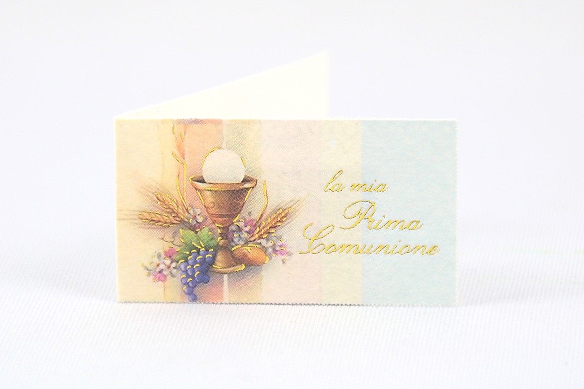 Formato aperto: cm 9 x 2,5Formato chiuso: cm 4,5x 2,5Stampa tipografica e lamina a caldo