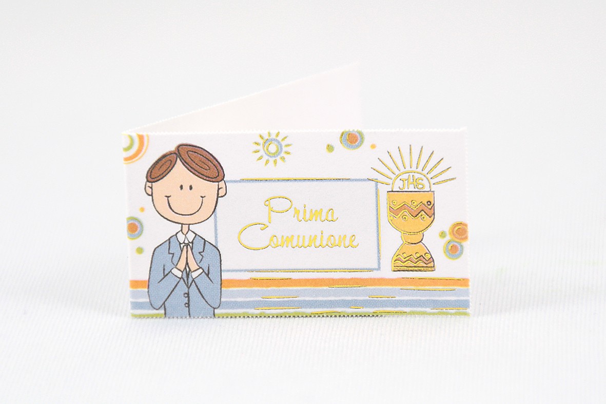 Formato aperto: cm 9 x 2,5. Formato chiuso: cm 4,5x 2,5. Stampa tipografica e lamina a caldo. Prezzo indicato per 100 pezzi.