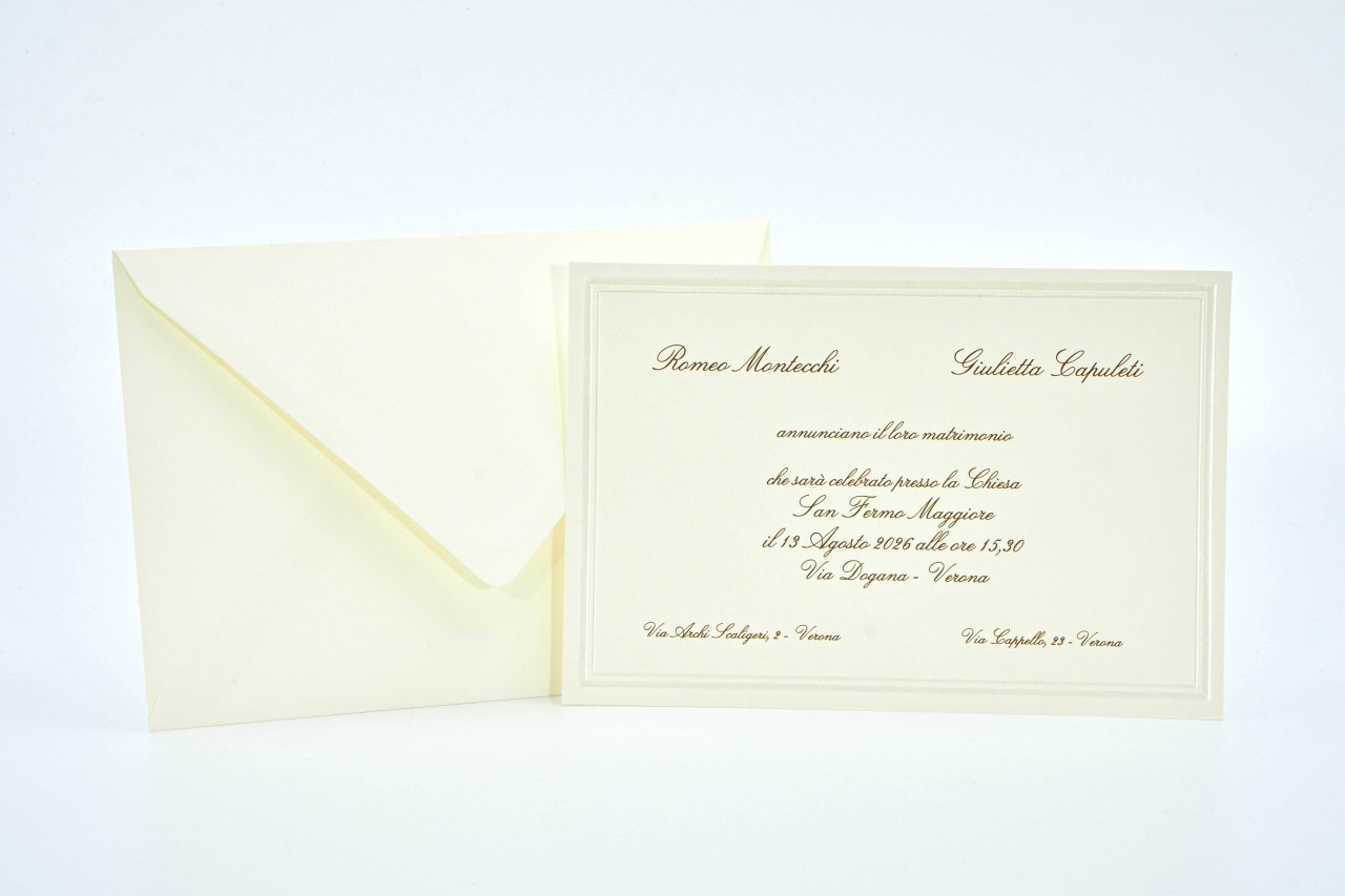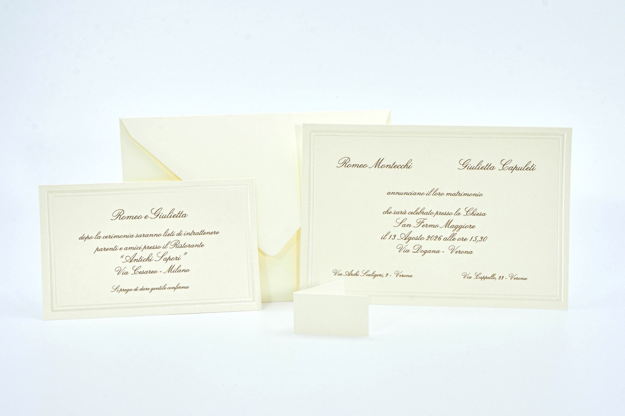 - Carta Avorio 240 gr /mq - Cornice in lamina perlata - Busta, invito e biglietto bomboniera inclusi nel prezzo