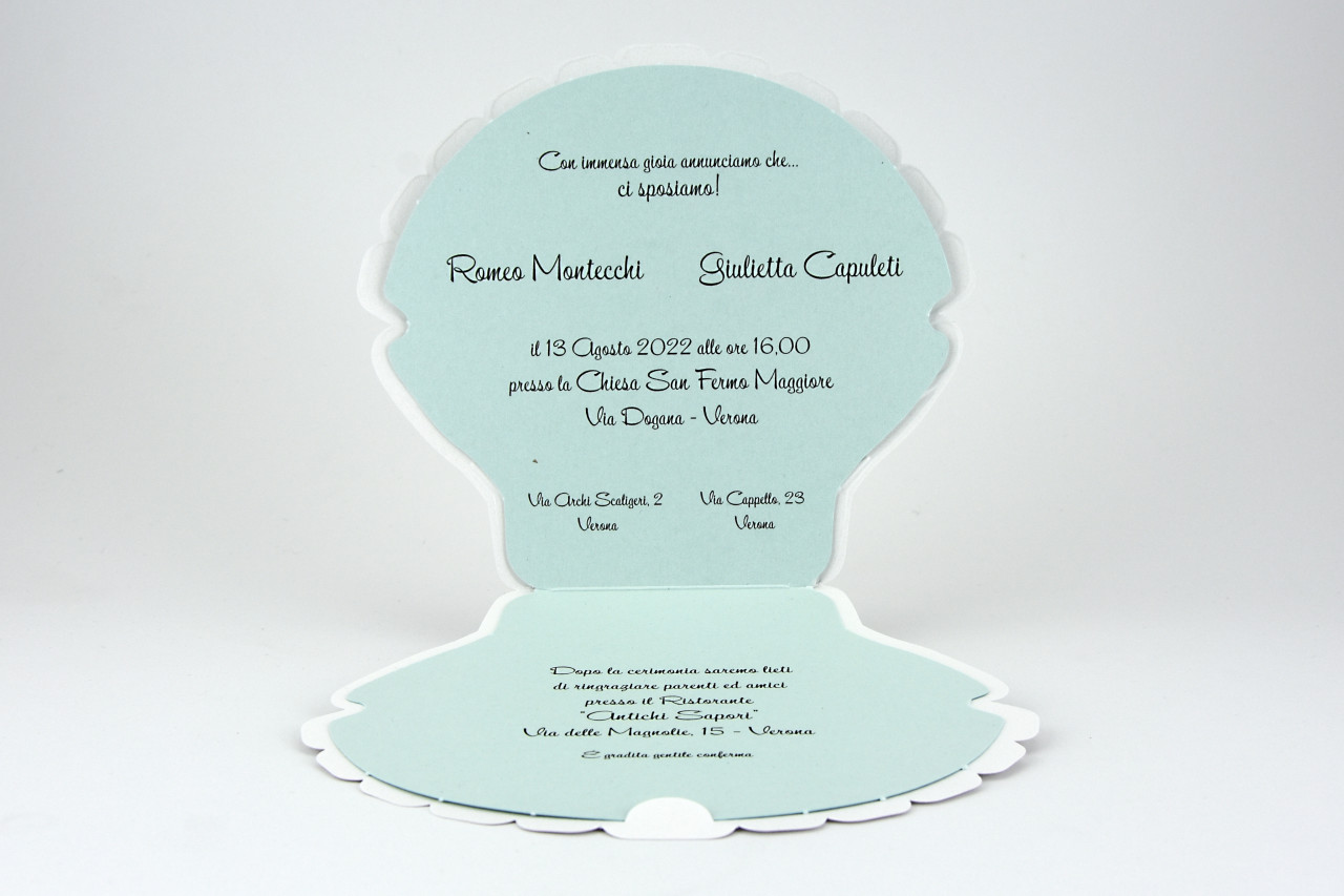 - Formato aperto: 300x150 mm- Formato chiuso: 150x150 mm- Carta Binca perlata 240 gr /mq (Esterno)- Carta Verde acqua 170 gr /mq (Interno)- Lamina a caldo perlata- Accessorio Perla adesiva- Busta, invito e biglietto bomboniera inclusi nel prezzo
