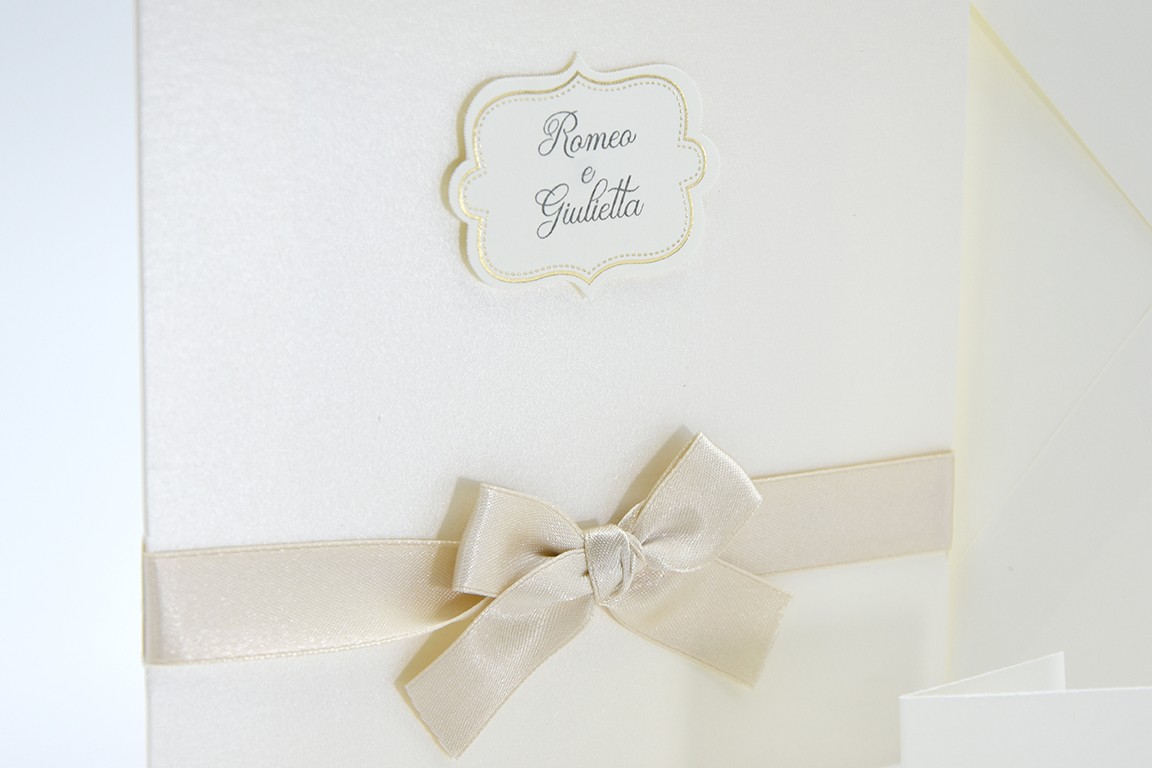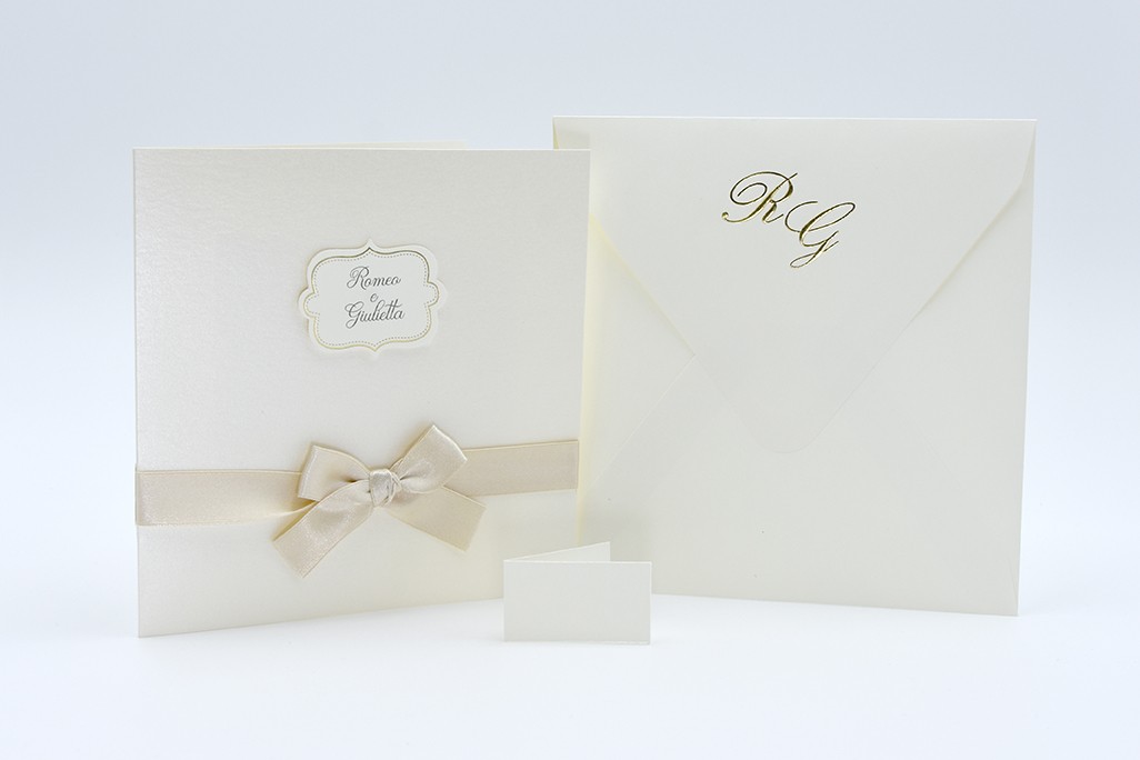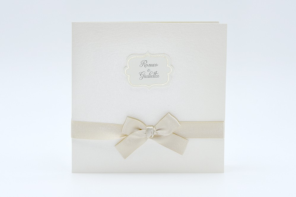 Formato aperto: 300 x 150 mm- Formato chiuso: 150 x 150 mm- Carta 200 gr /mq (interno) - Carta 240 gr /mq (esterno) - Lamina a caldo oro - Nastro doppio raso mm 10 - Busta, nastro e biglietto bomboniera inclusi nel prezzo.