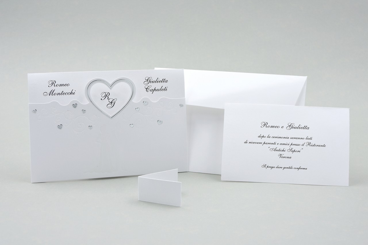 1x busta 1x partecipazione con iniziali 1x invito 1x biglietto da confetti