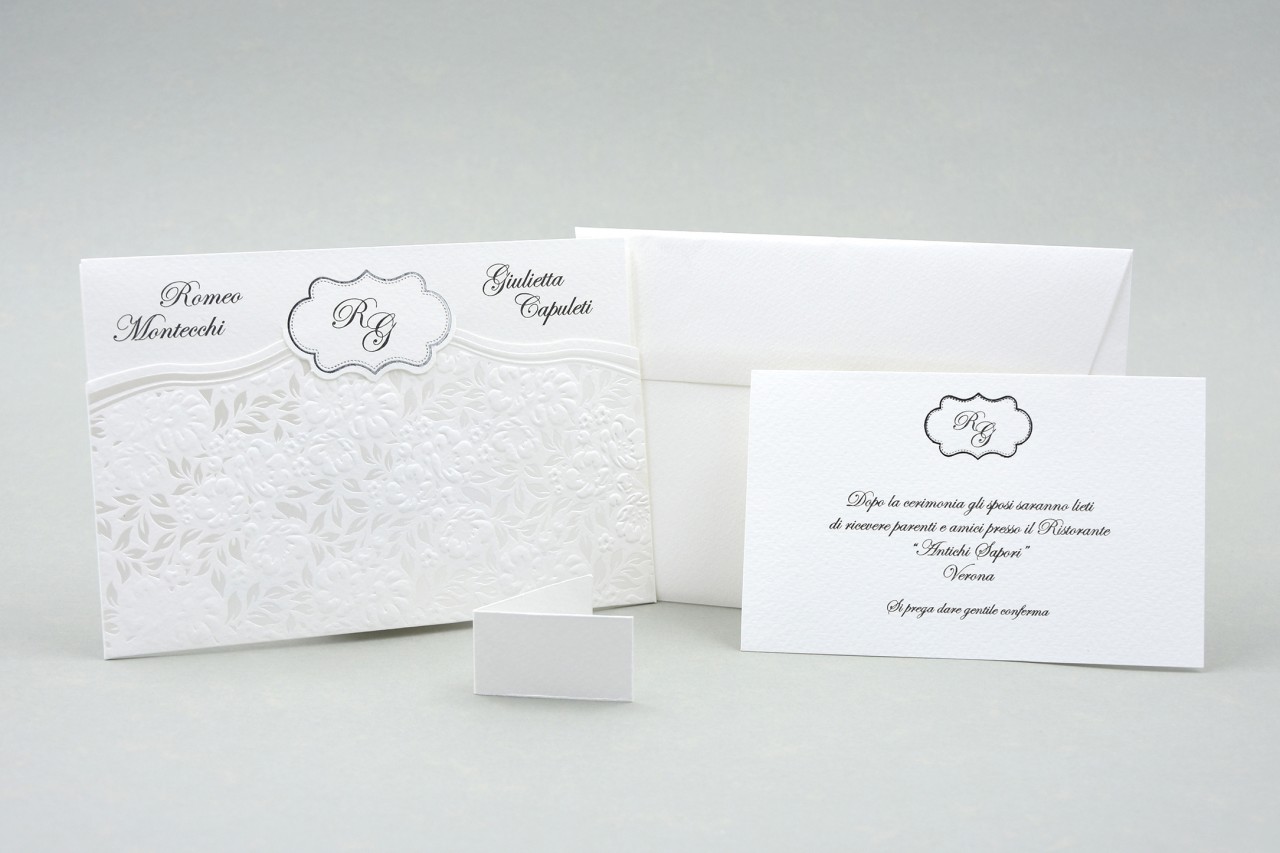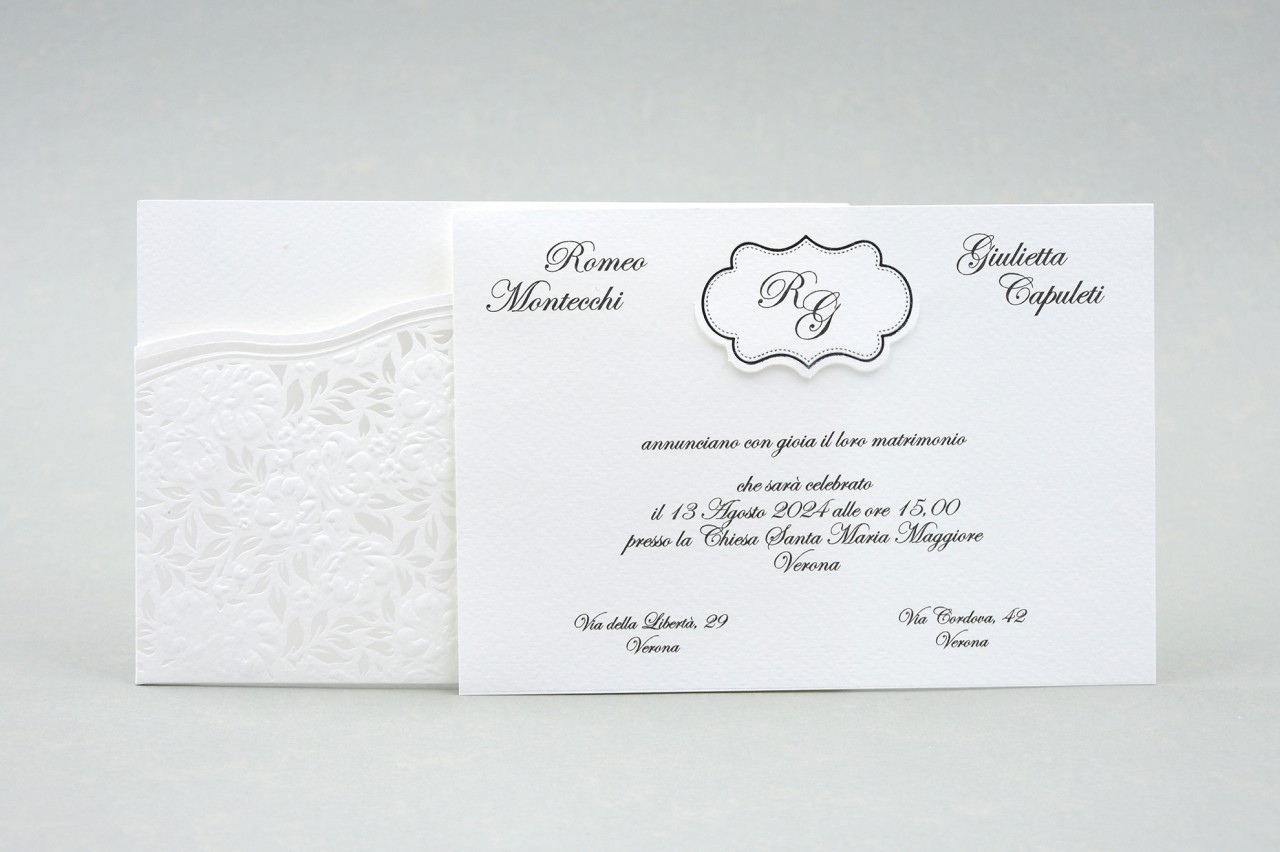 1x busta 1x partecipazione con iniziali 1x invito con iniziali 1x biglietto da confetti