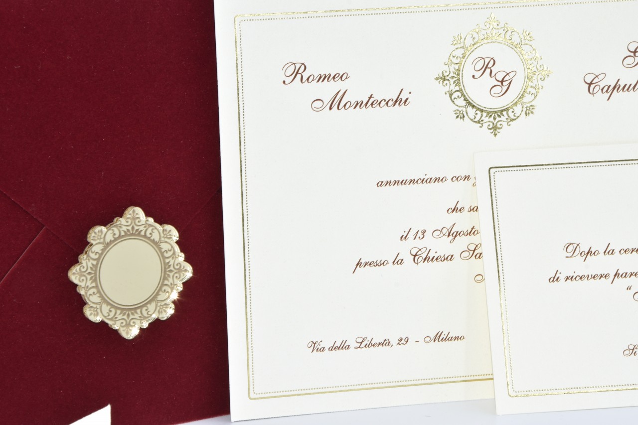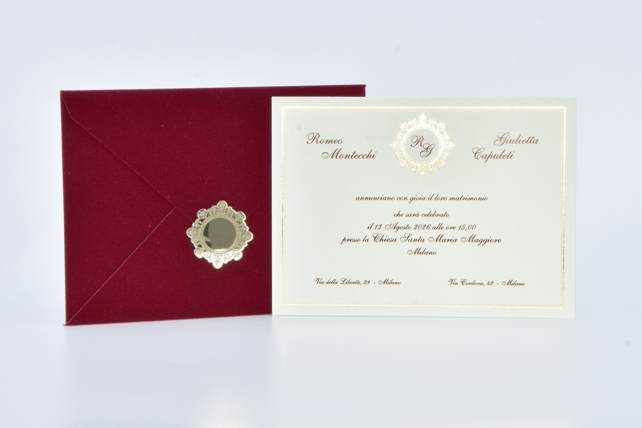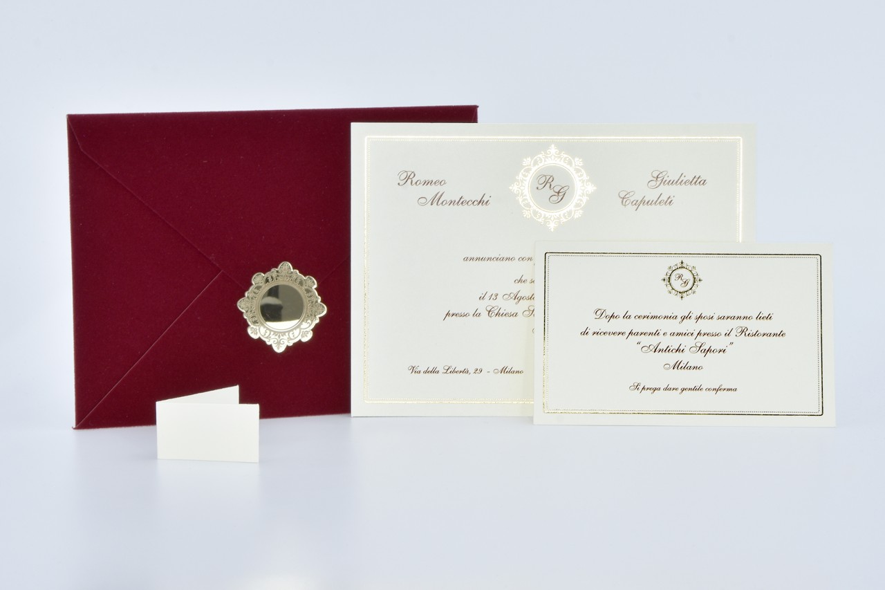 1x busta 1x partecipazione con iniziali 1x invito con iniziali 1x biglietto da confetti