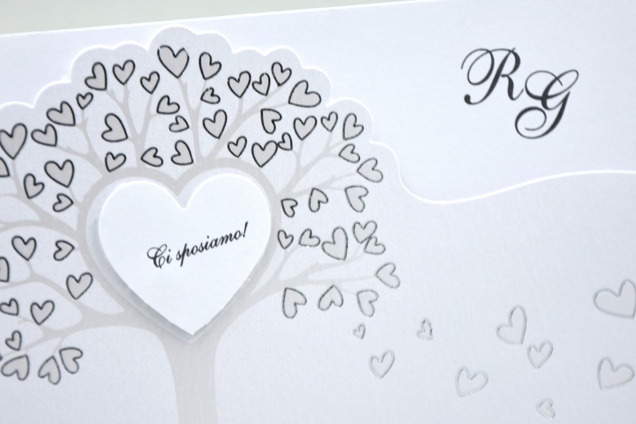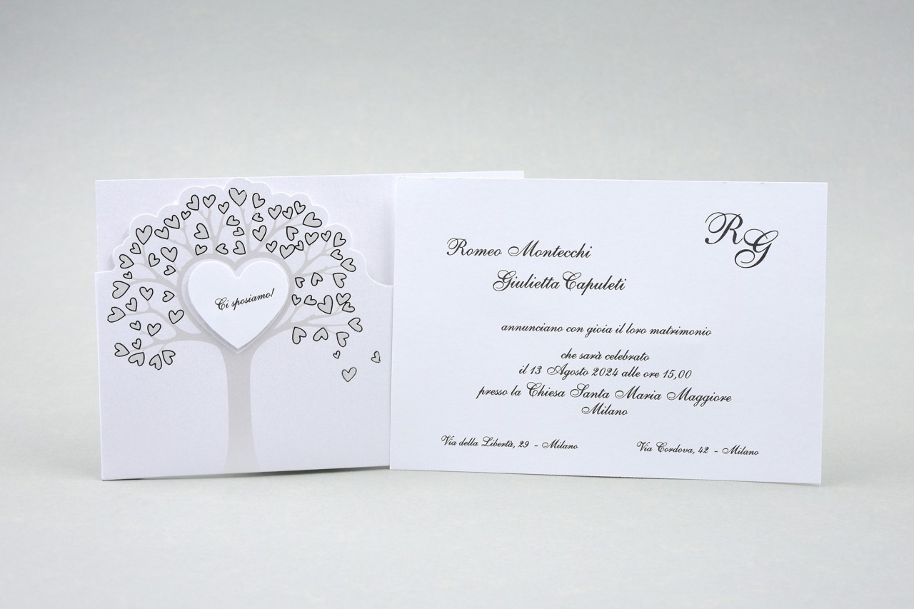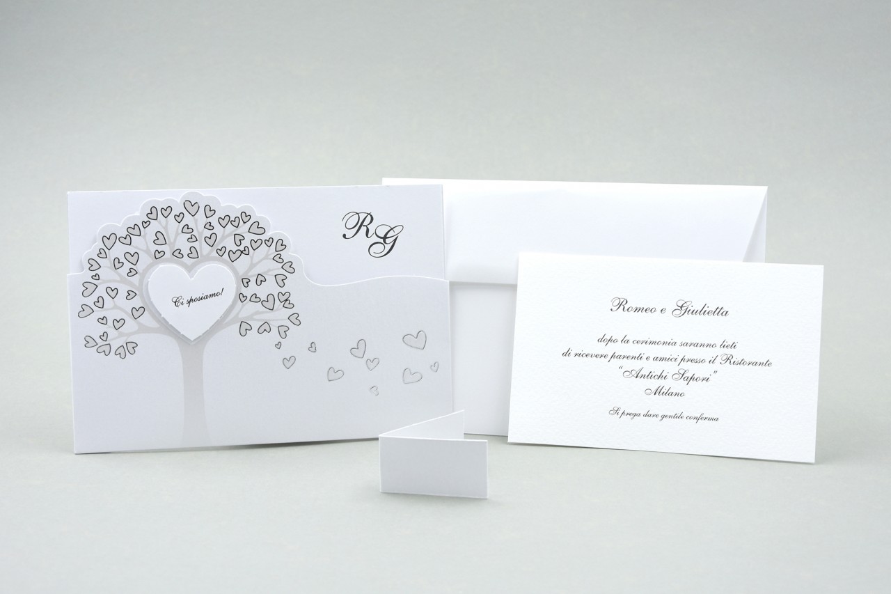 1x busta 1x partecipazione con iniziali 1x invito 1x tag 1x biglietto da confetti