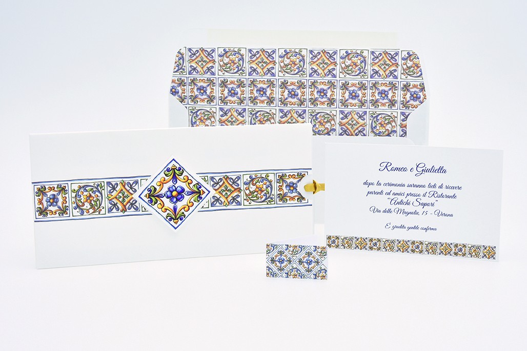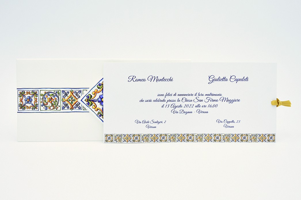 Formato aperto: 310 x 100 mm - Formato chiuso: 100 x 210 mm - Carta bianca 200 gr /mq (interno) - Carta bianca 240 gr /mq (esterno) - Lamina a caldo trasparente - Nastro doppio raso mm 6 - Accessorio in plexiglass stampato UV - Busta, interno busta, nastro, accessorio in plexiglass, invito e biglietto bomboniera inclusi nel prezzo.