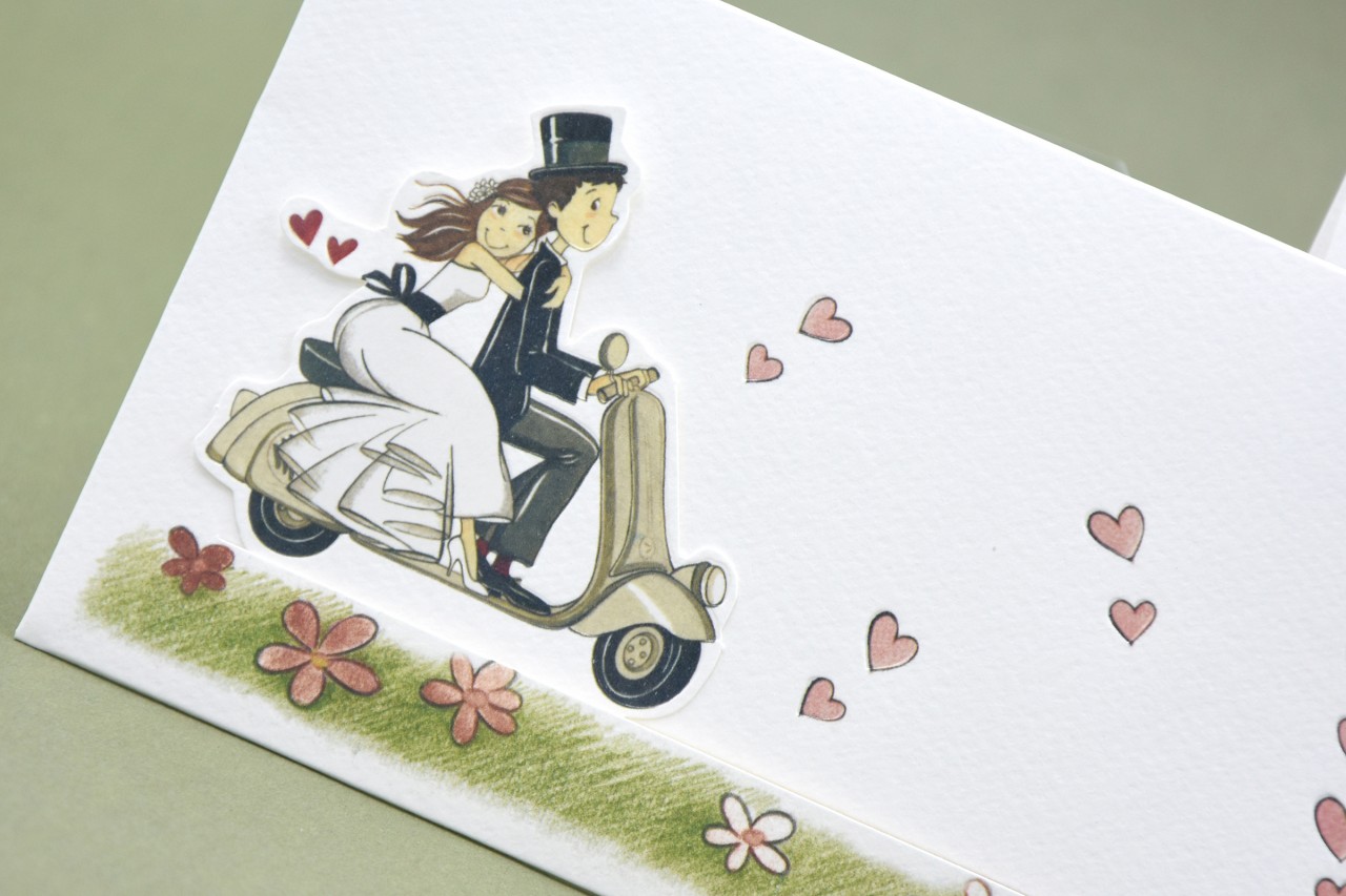 1x busta 1x partecipazione 1x invito 2x biglietto da confetti